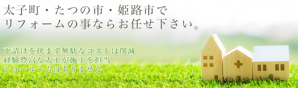 兵庫県(揖保郡太子町、たつの市、網干区、余部区)の住宅リフォーム・家の改装・補修などは、太子町のリフォーム店ウッドワークスにお任せください。